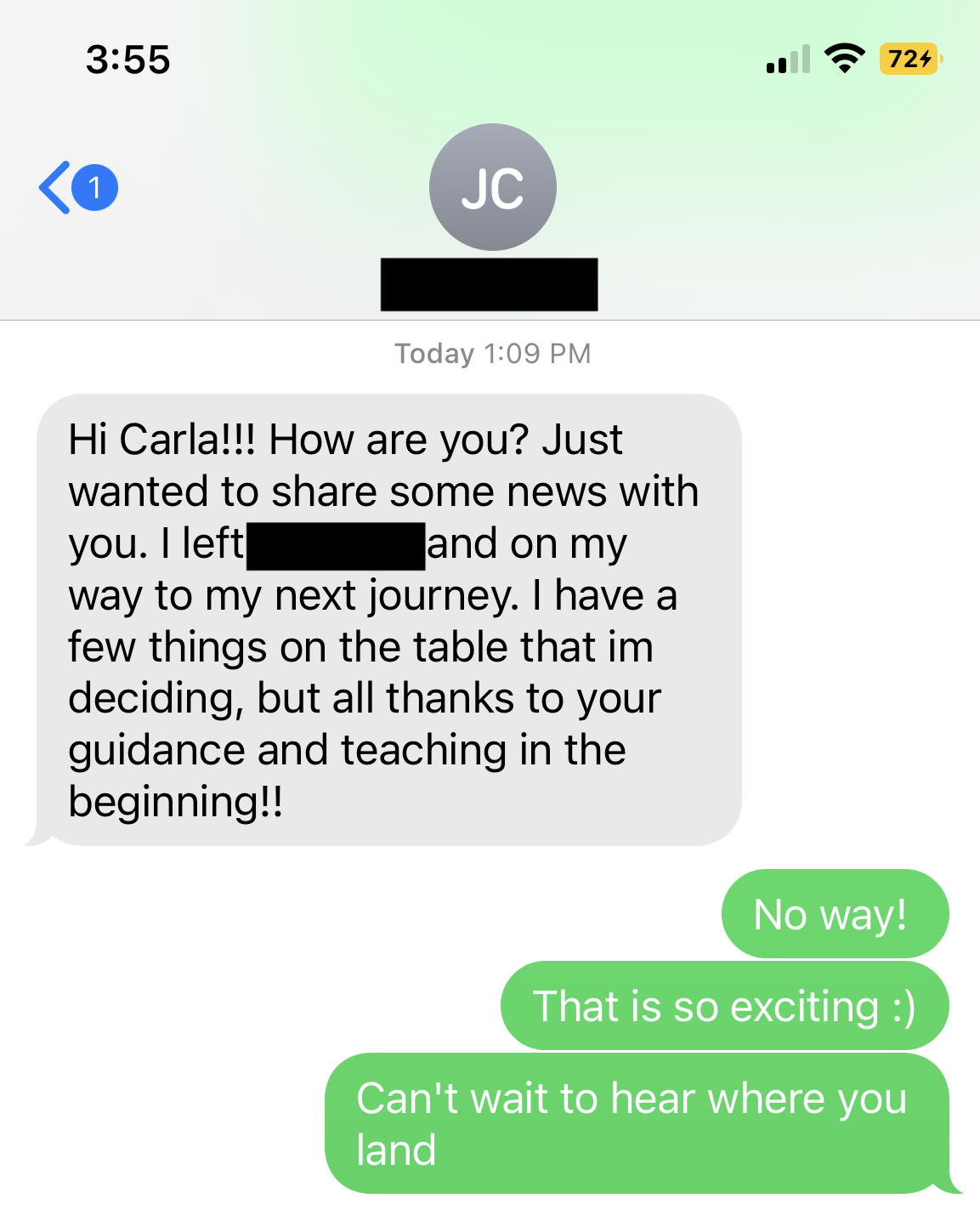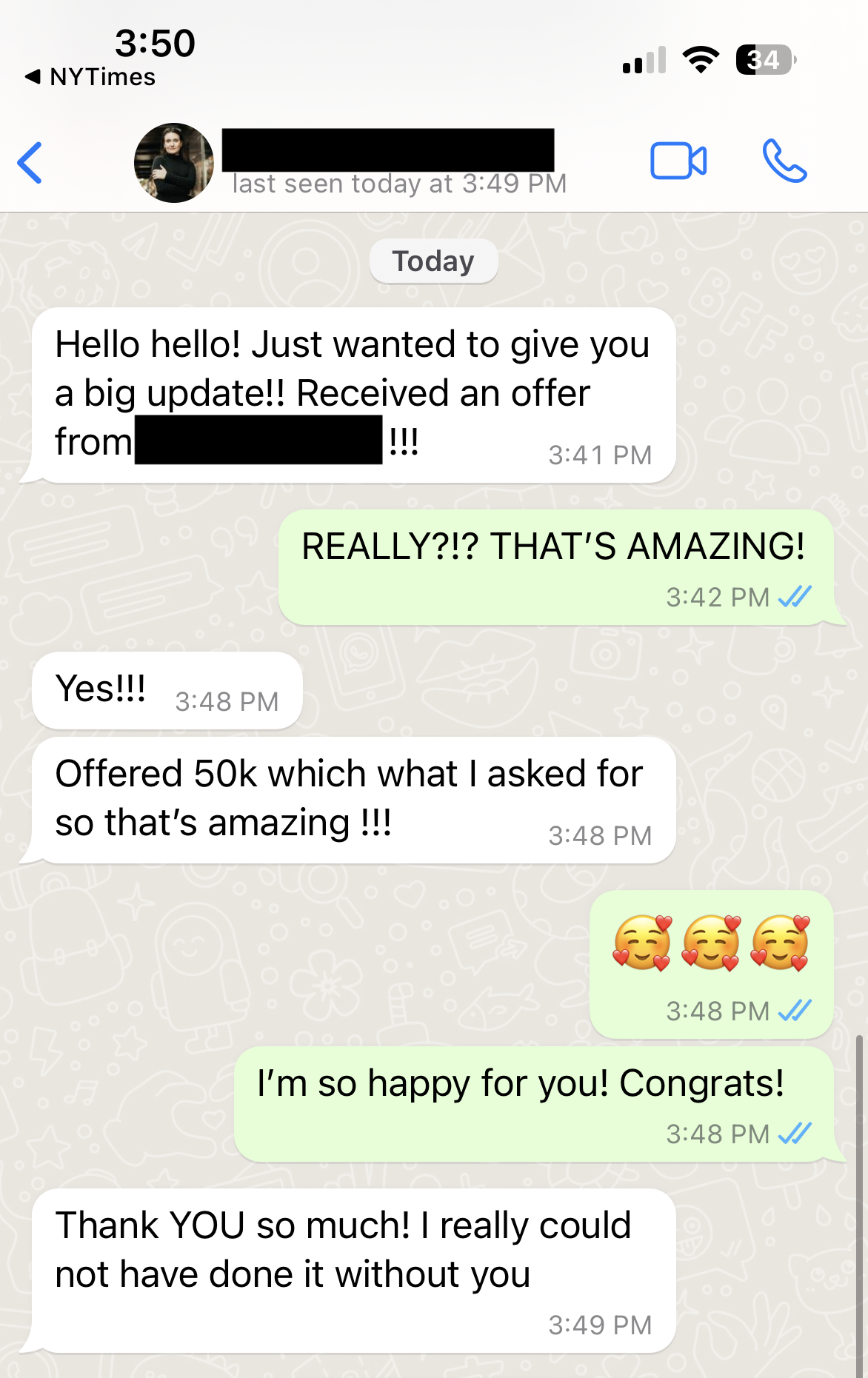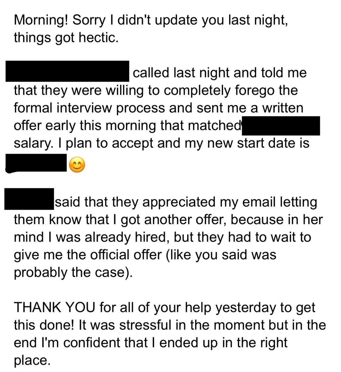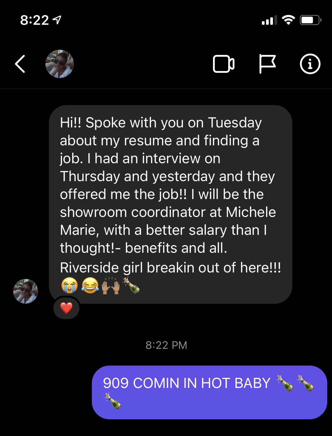 After one session reviewing her resume and reframing her story, she applied for a social/content role. Using the outreach strategy I taught her, she contacted the hiring manager directly.